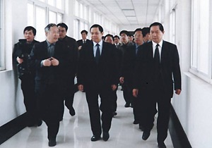 | 河南省委常委、省政府常务副省长李克(前排中)来校视察 |