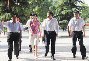 | 时任郑州市委常委、纪委书记王璋(右二)来校视察 |