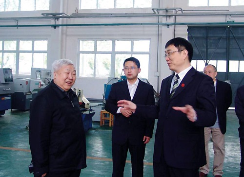 | 时任中国高等教育学会会长、原教育部部长周远清(左一)来校视察 |